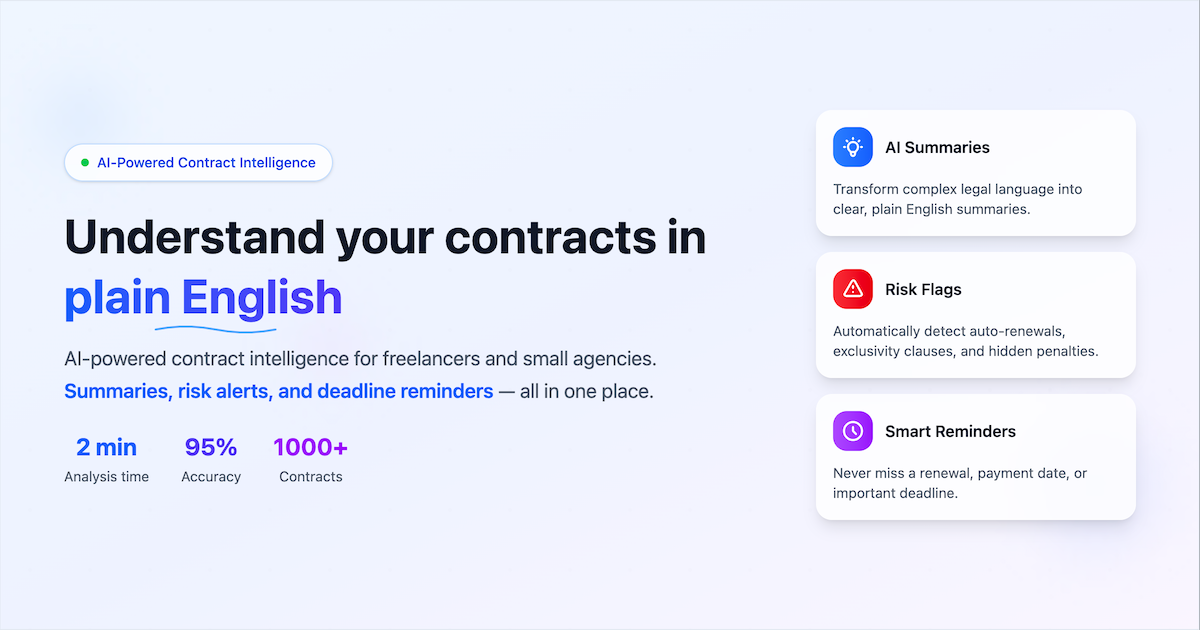- Helps non-lawyers understand contract terms and spot potential issues before signing