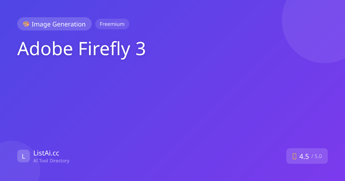 Adobe Firefly 3Adobe's commercially safe AI image generator Pricing: Freemium. See pros, cons, alternatives, and comparisons.Open SourceWritingImage GenerationDeveloper ToolsVisit Adobe Firefly 3