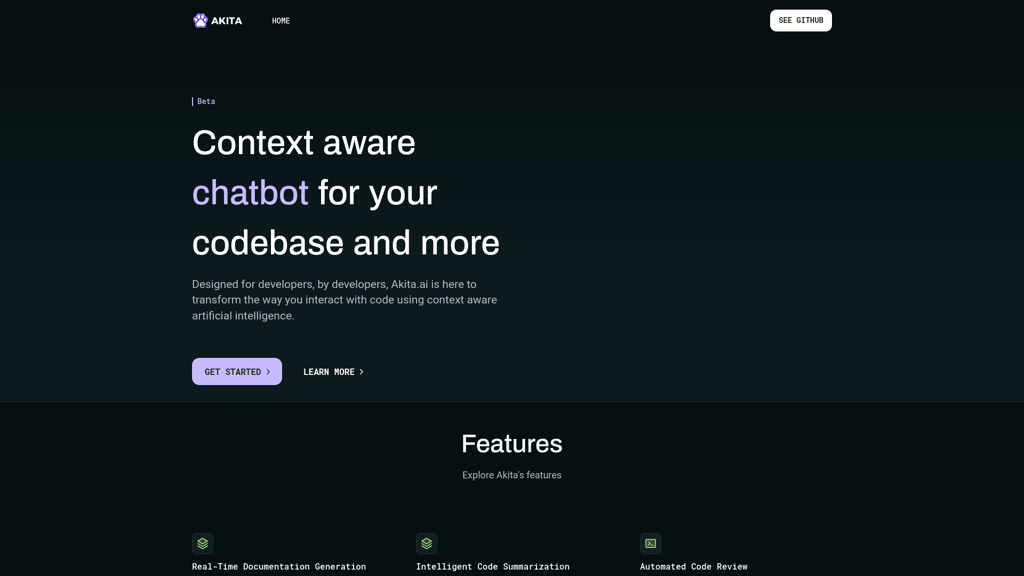 Akita Assistant, a part of Akita.ai, revolutionizes coding by offering real-time documentation, code summarization, automatic code reviews, and a context-aware chatbot. It's designed to enhance produc