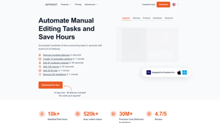 AutoCut is an innovative Premiere Pro extension aimed at revolutionizing the video editing process. With features like automatic removal of silences, animated captions, podcast editing, and automatic