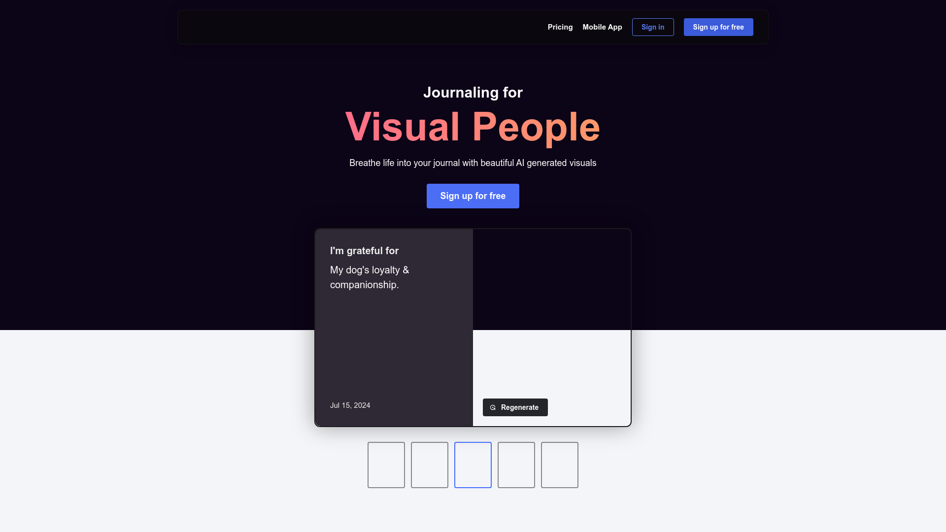 Avath is a cutting-edge journaling platform that reimagines self-reflection by enabling users to create visual portrayals of their journal entries using pioneering AI models. By signing up, users get