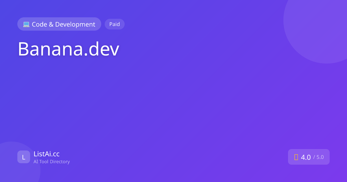 Banana.devServerless GPU inference platform for ML models Pricing: Paid. See pros, cons, alternatives, and comparisons.FreeWritingDeveloper ToolsVisit Banana.dev