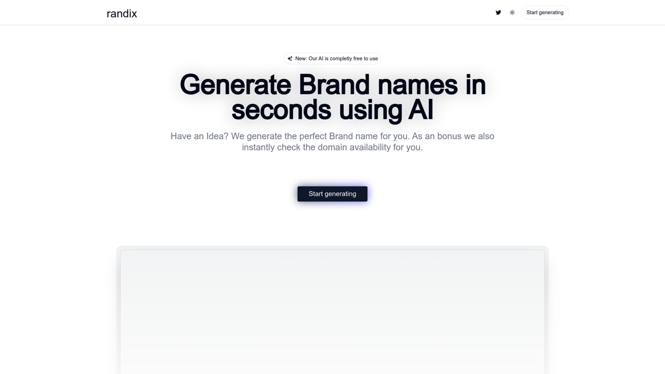 The Brandix AI Brand Name Generator offers a cutting-edge, free-to-use AI tool for creating brand names in seconds. Users can generate names by choosing from various categories or entering their own m