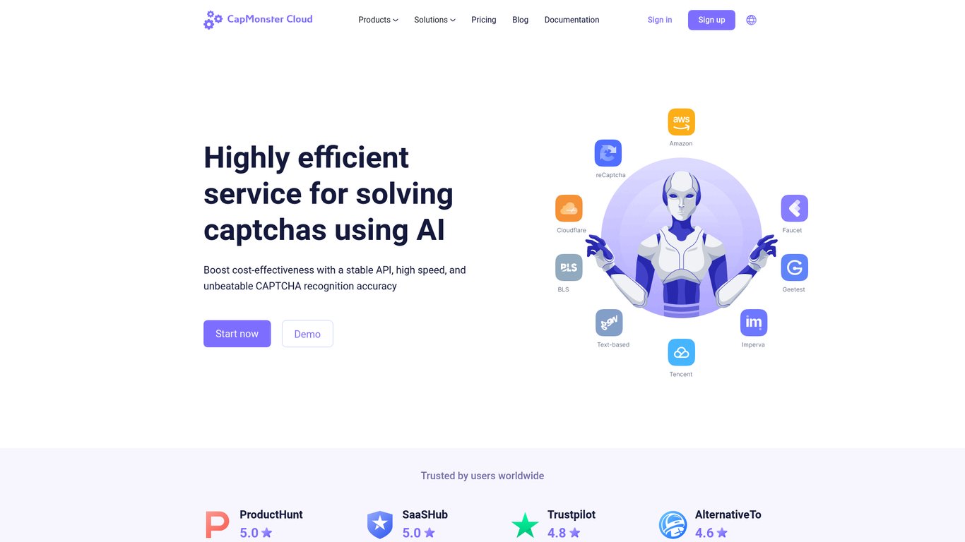 CapMonster Cloud is an AI-powered captcha-solving service that automates the process of solving CAPTCHAs, allowing users seamless access to websites and online services without manual entry. It is ben