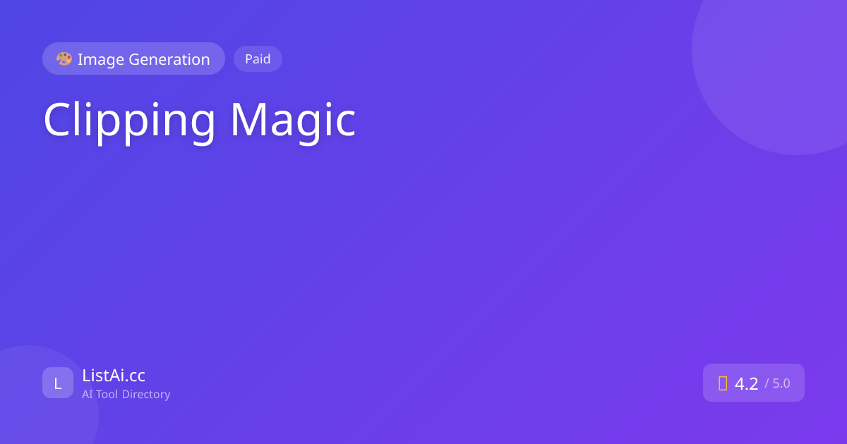Clipping MagicAdvanced AI background removal with manual refinement Pricing: Paid. See pros, cons, alternatives, and comparisons.Open SourceVideoWritingDeveloper ToolsVisit Clipping Magic