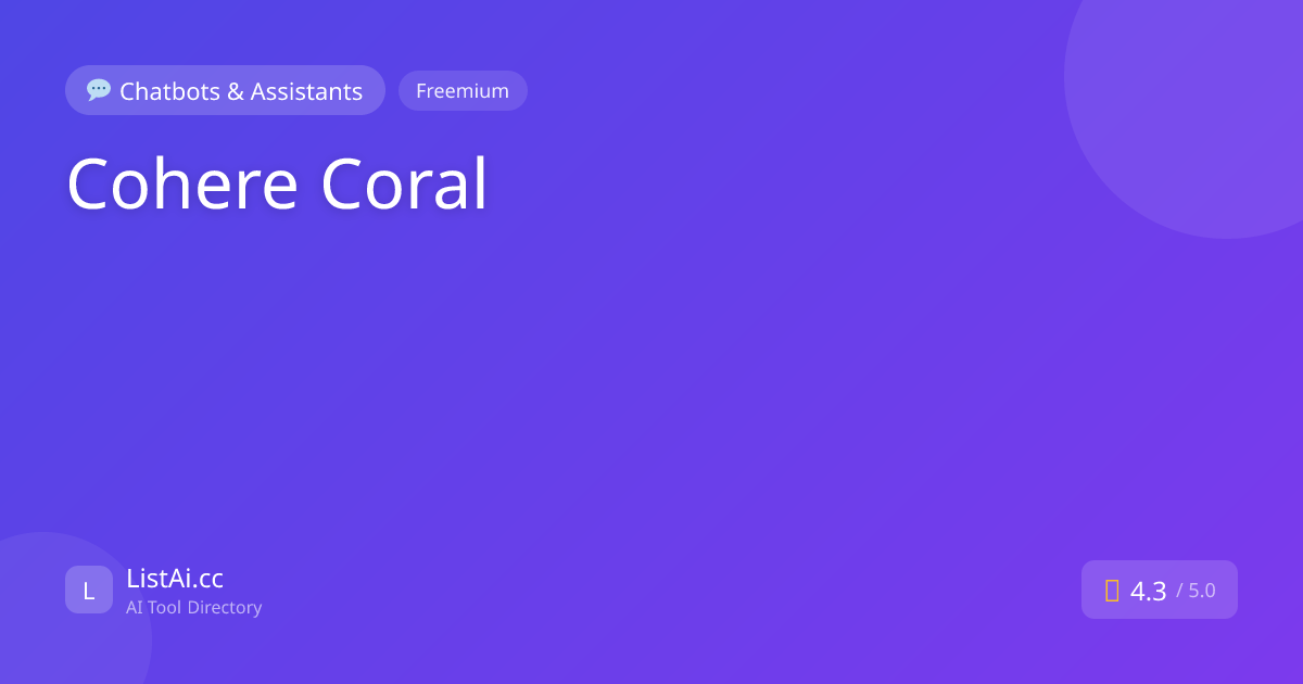 Cohere CoralEnterprise AI assistant with private knowledge base Pricing: Freemium. See pros, cons, alternatives, and comparisons.FreemiumWritingResearchProductivityVisit Cohere Coral