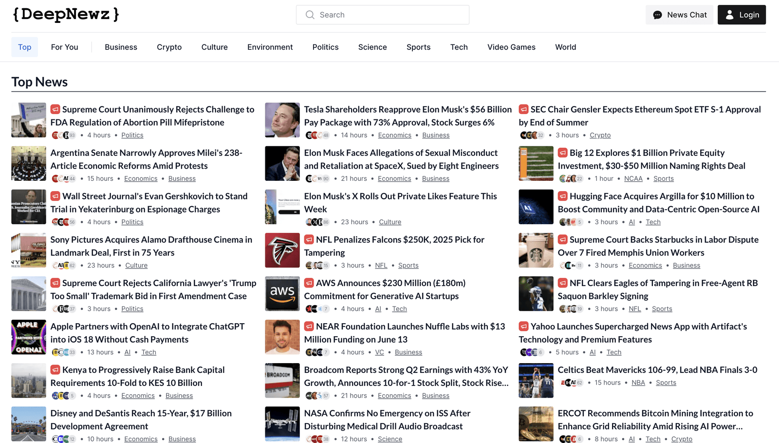 DeepNewz creates original news stories in real-time using AI, identifying trending topics from social media. Offering timely, engaging, and non-clickbait headlines.