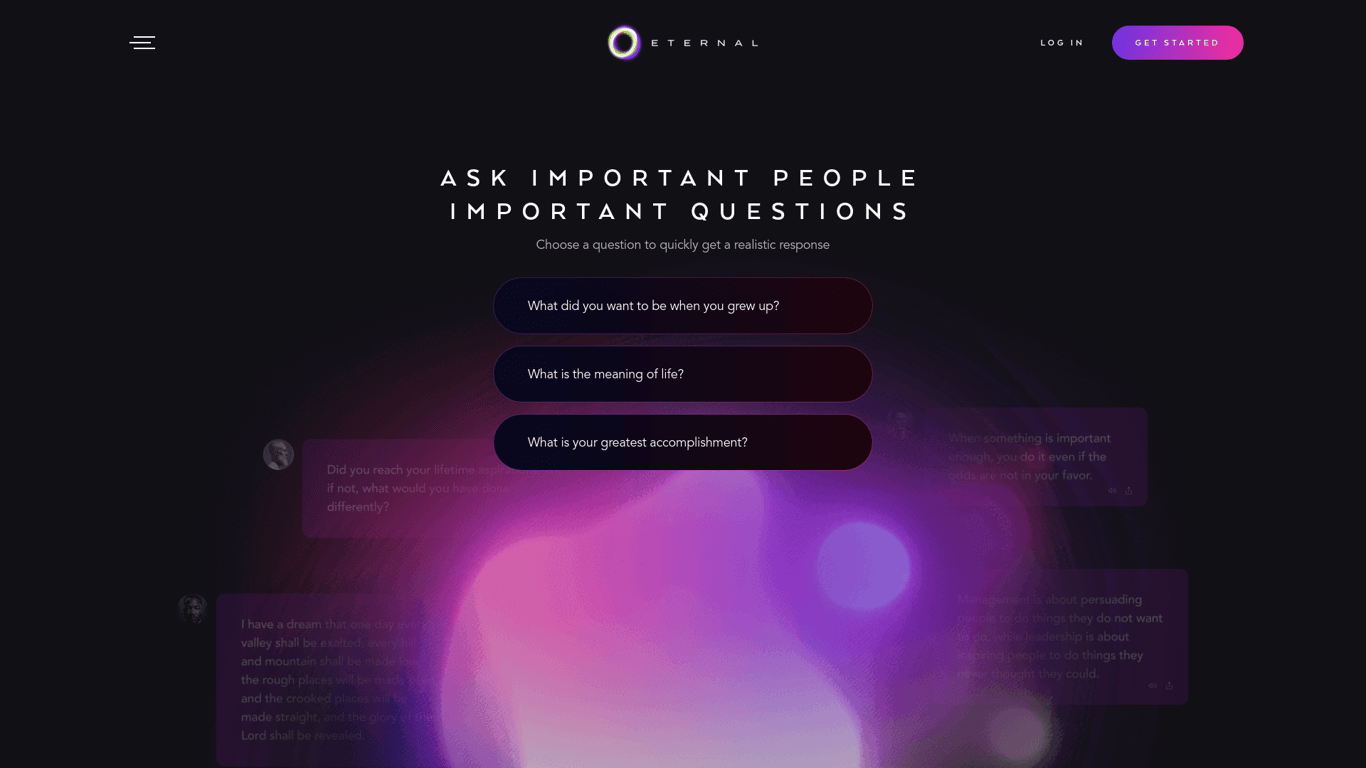 Eternal AI is an innovative platform in artificial intelligence designed to create digital avatars for individuals, thereby allowing for interactions that can last a lifetime. The main aim of Eternal