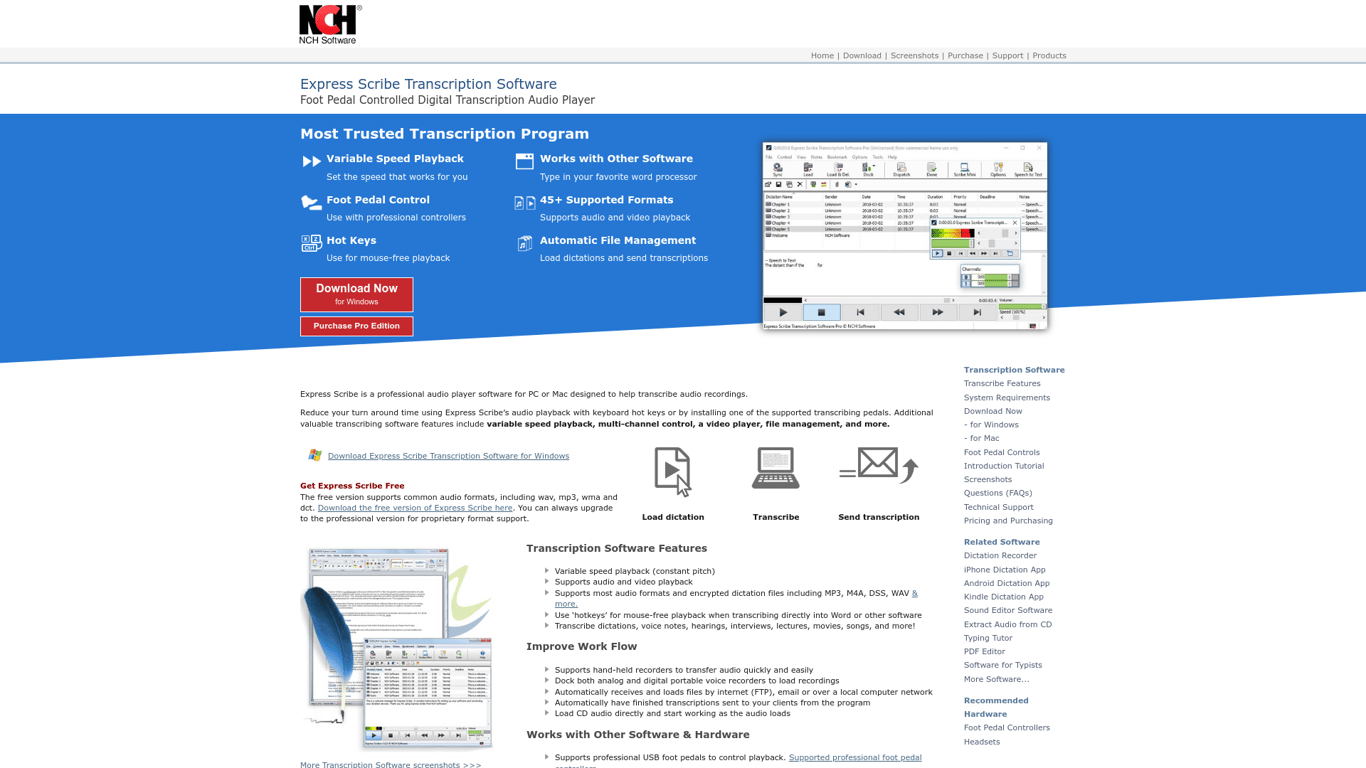 Express Scribe is a professional audio player software for Windows and Mac designed to assist in transcribing audio recordings efficiently. The software offers features such as variable speed playback