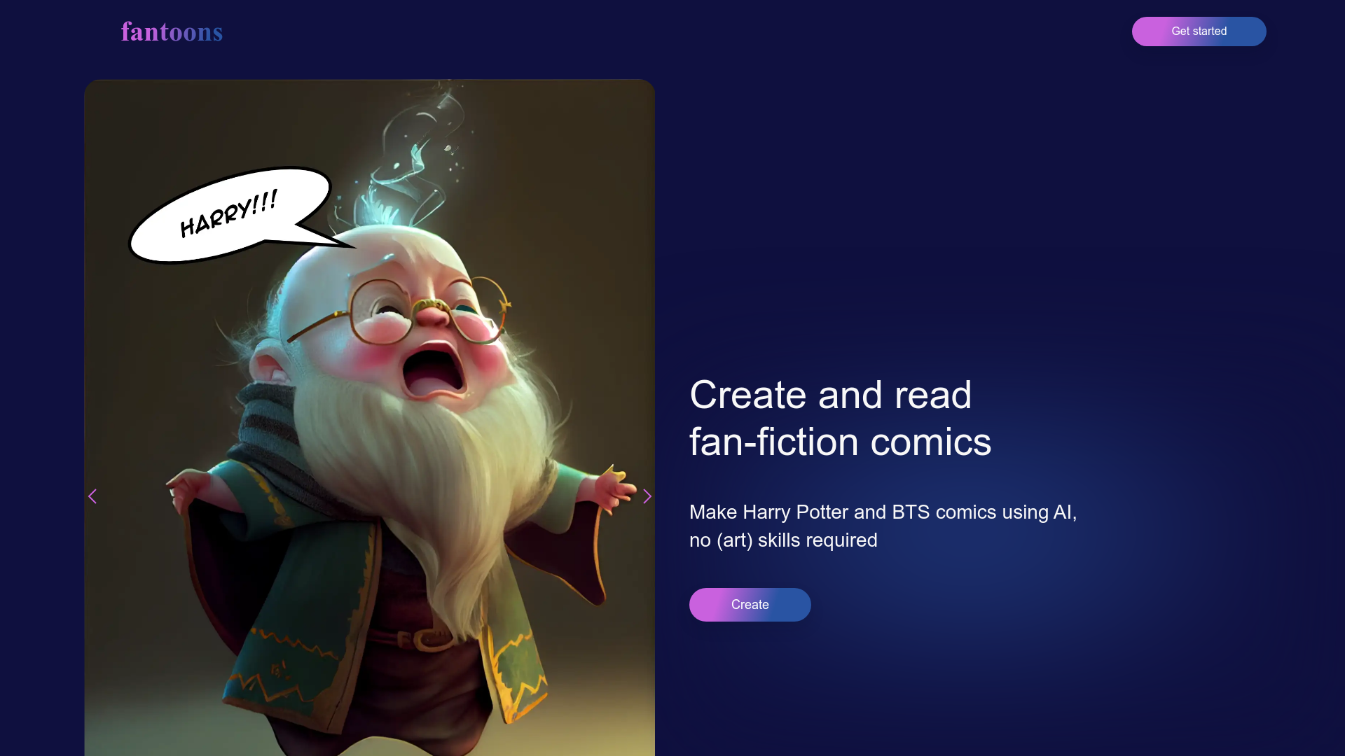 Fantoons offers a unique platform for creating and reading fan-fiction comics, primarily themed around Harry Potter and BTS. The platform utilizes AI technology to allow users to create comics without