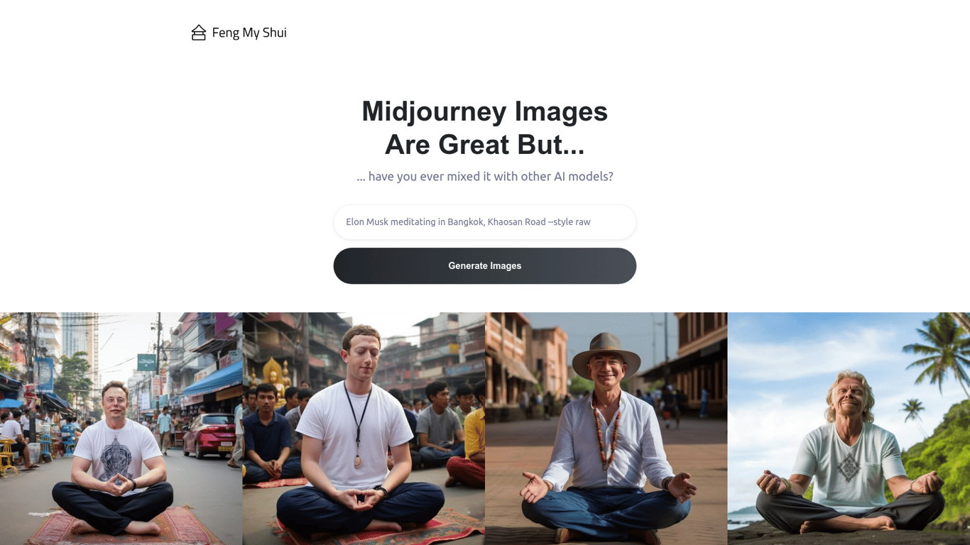 Feng My Shui is an innovative online service designed to combine the strengths of Midjourney (MJ) and SDXL to create enhanced AI-generated images. Users only need a Feng My Shui account to access the