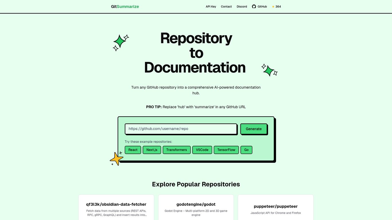 GitSummarize is an AI-driven tool that automates the creation of comprehensive documentation from any GitHub repository. Its primary objective is to simplify the documentation process, enabling develo