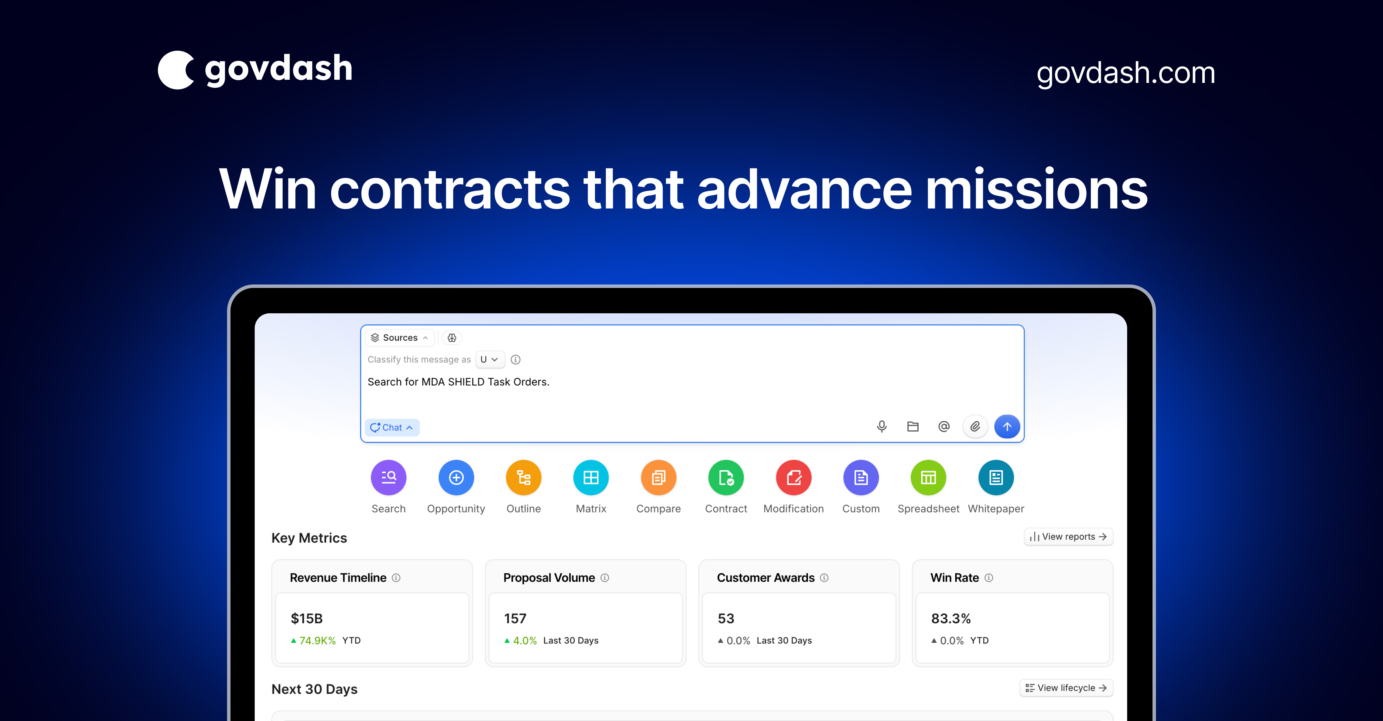 simplify GovCon lifecycle: capture, proposal, contract management, automated compliance.