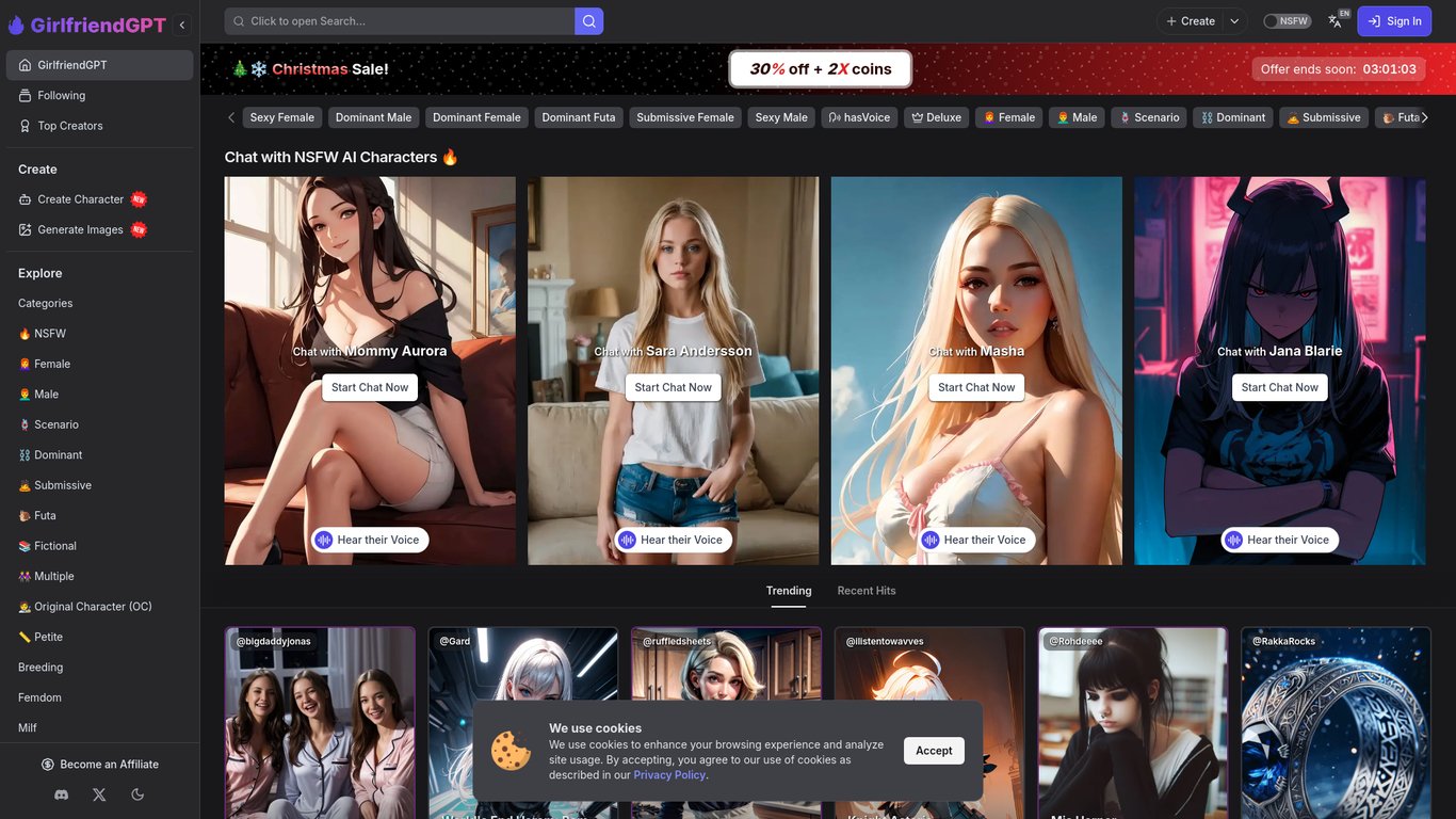 GirlfriendGPT is a cutting-edge AI-powered chatbot platform designed to deliver immersive roleplaying and intimate communication experiences. It boasts a comprehensive library of over 25,000 NSFW AI c