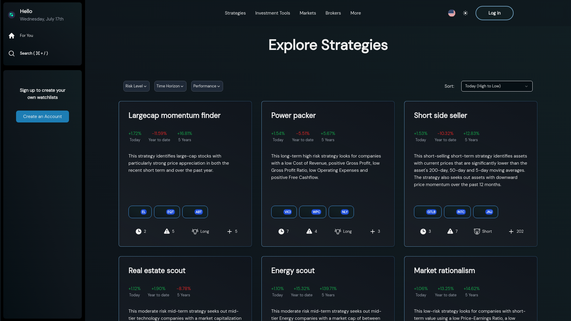 hoopsAI is a comprehensive platform designed for investors and traders to find, compare and analyze investment strategies. The platform offers a variety of tools, including stock screeners and compari