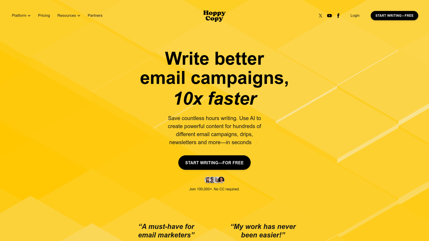 Hoppy Copy is a comprehensive content creation and marketing automation platform designed to enhance your email campaigns. With features like AI Copywriter, Newsletter Creator, and Email Sequence Crea