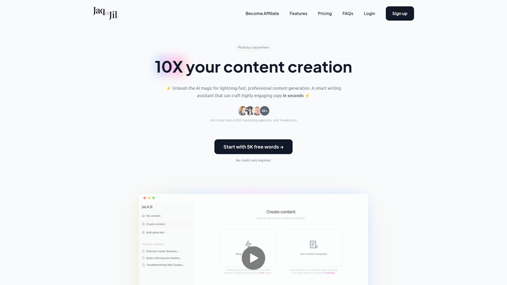 Jaq n' Jil is a cutting-edge AI-powered writing assistant created by copywriters for anyone needing high-quality, fast content generation. Their service promises to 10X your content creation by genera