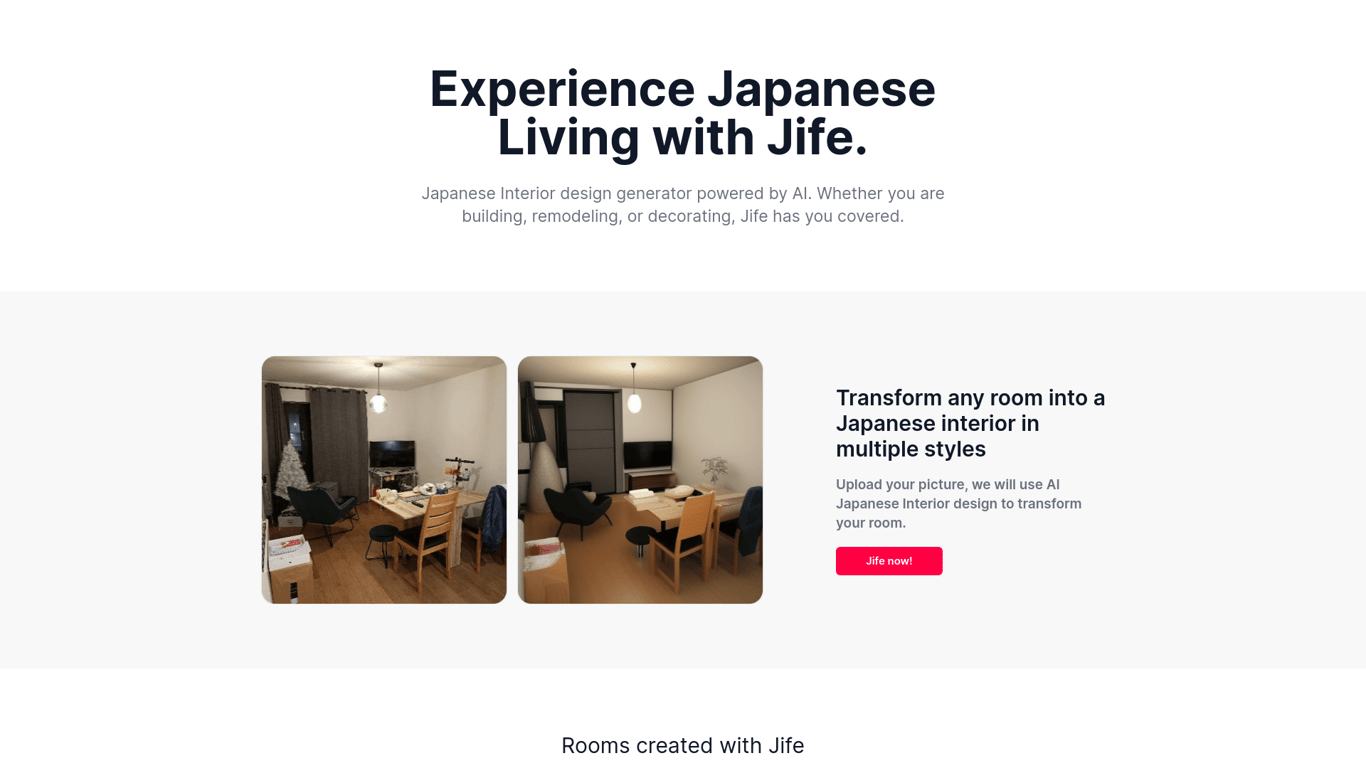 Jife is a unique AI-powered platform that transforms your living spaces into stunning Japanese interior designs effortlessly. By simply uploading a picture of your room, Jife's advanced algorithms gen
