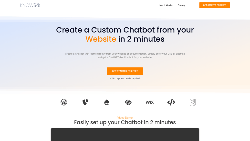 KnowBo is an innovative platform that allows users to create custom chatbots from their website in just 2 minutes. Whether you need it for customer service, FAQs, or general support, KnowBo's easy set