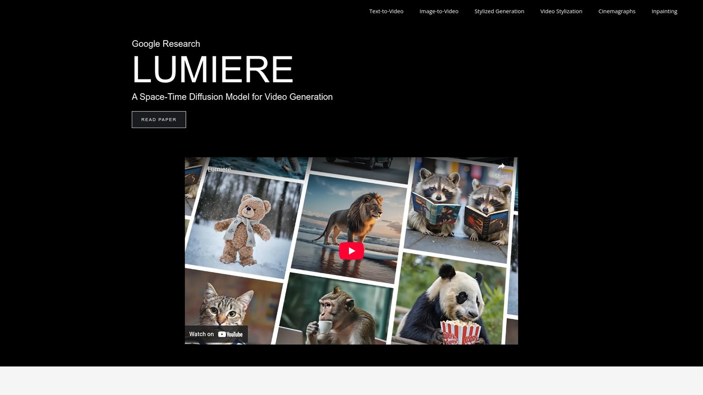 Lumiere, developed by Google Research, is an advanced space-time diffusion model designed to generate high-quality videos from textual prompts and images. This AI model creates realistic and coherent