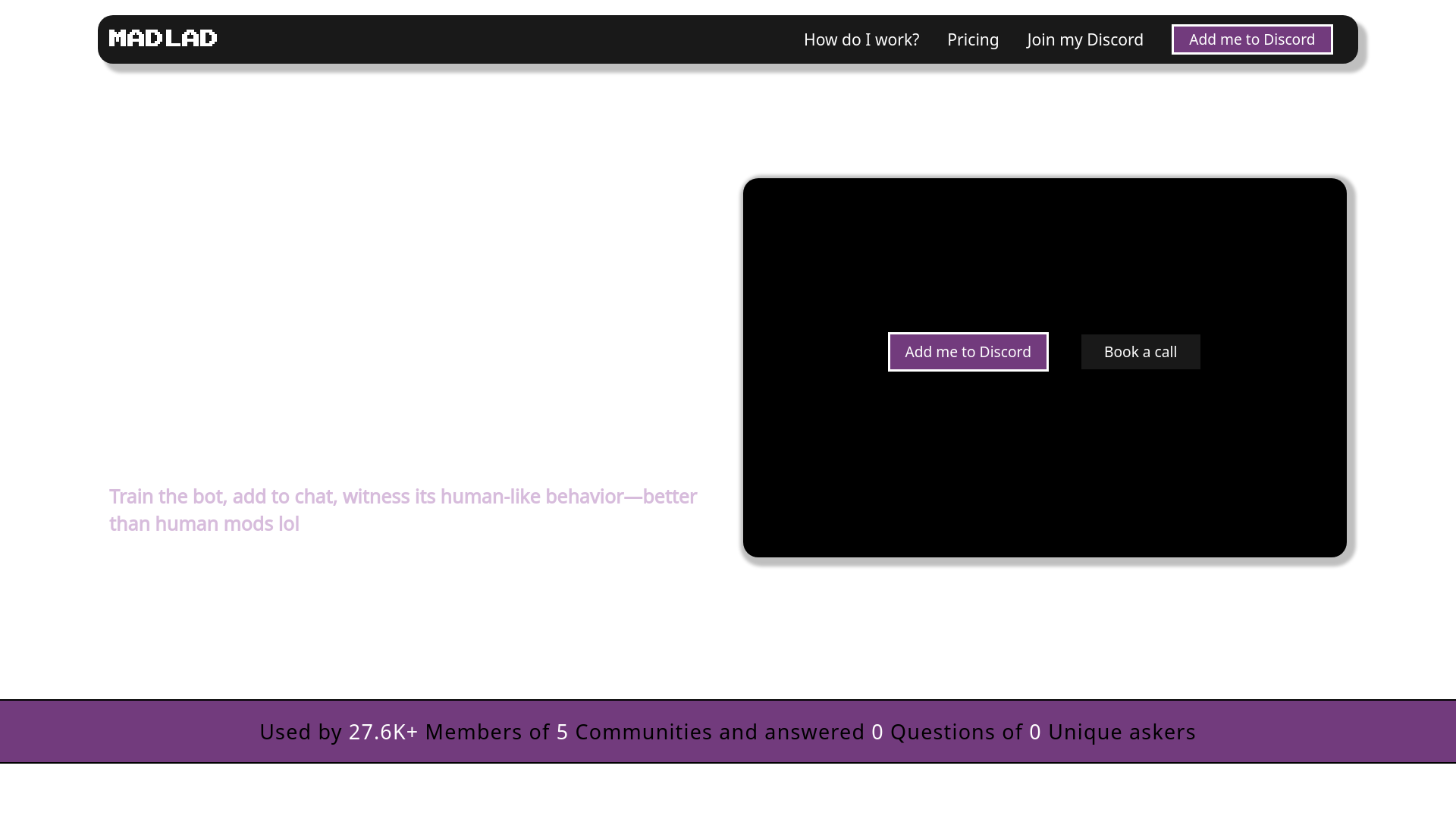 MADLAD is an innovative community moderation bot designed to replicate and even surpass the capabilities of human moderators. This AI-driven bot can be personalized and integrated into Discord communi