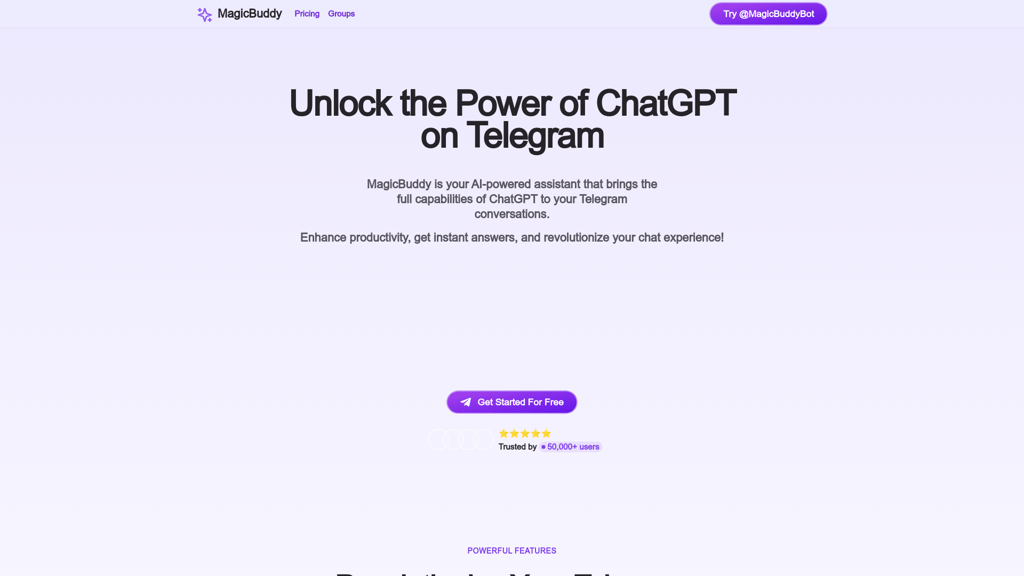 MagicBuddy is an AI-powered assistant that integrates ChatGPT into Telegram, offering features such as intelligent conversations, instant answers, multilingual support, task automation, voice message