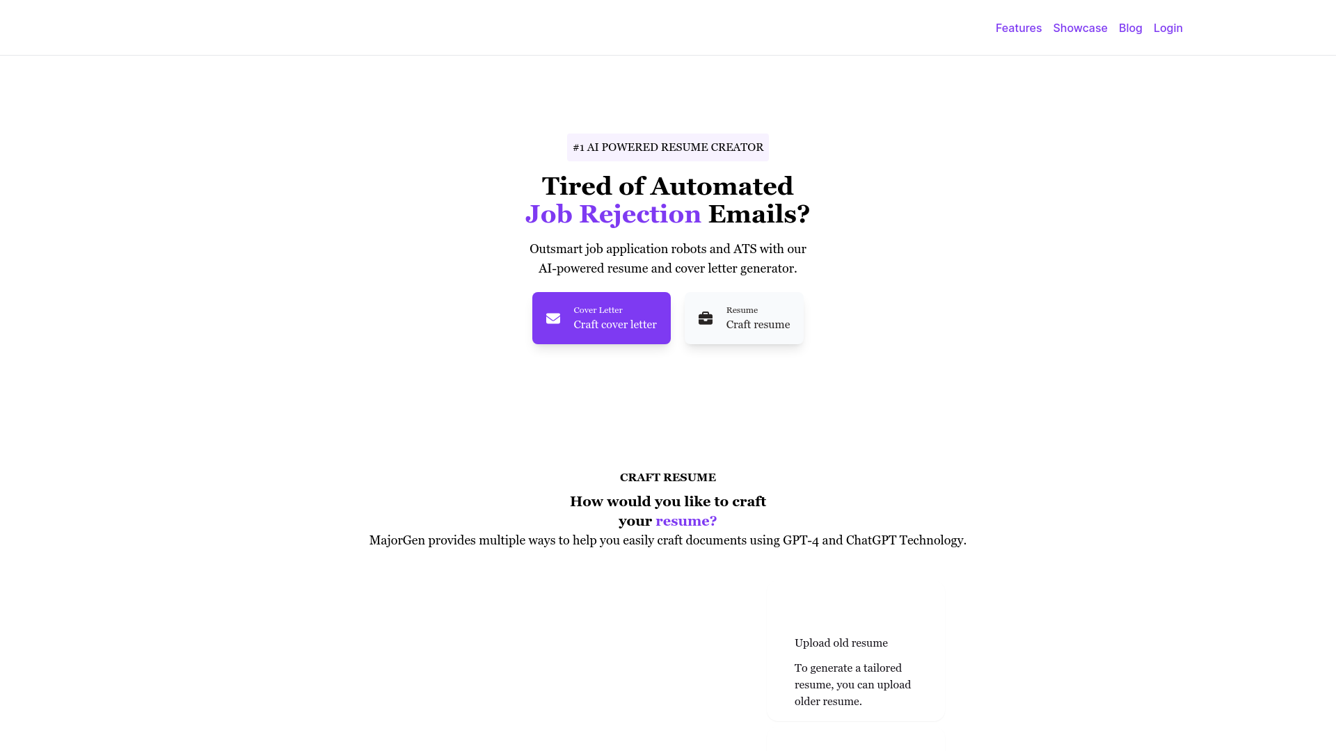 MajorGen is an AI-powered resume and cover letter generator designed to help job seekers outsmart job application robots and Applicant Tracking Systems (ATS). Users can craft their resumes by uploadin