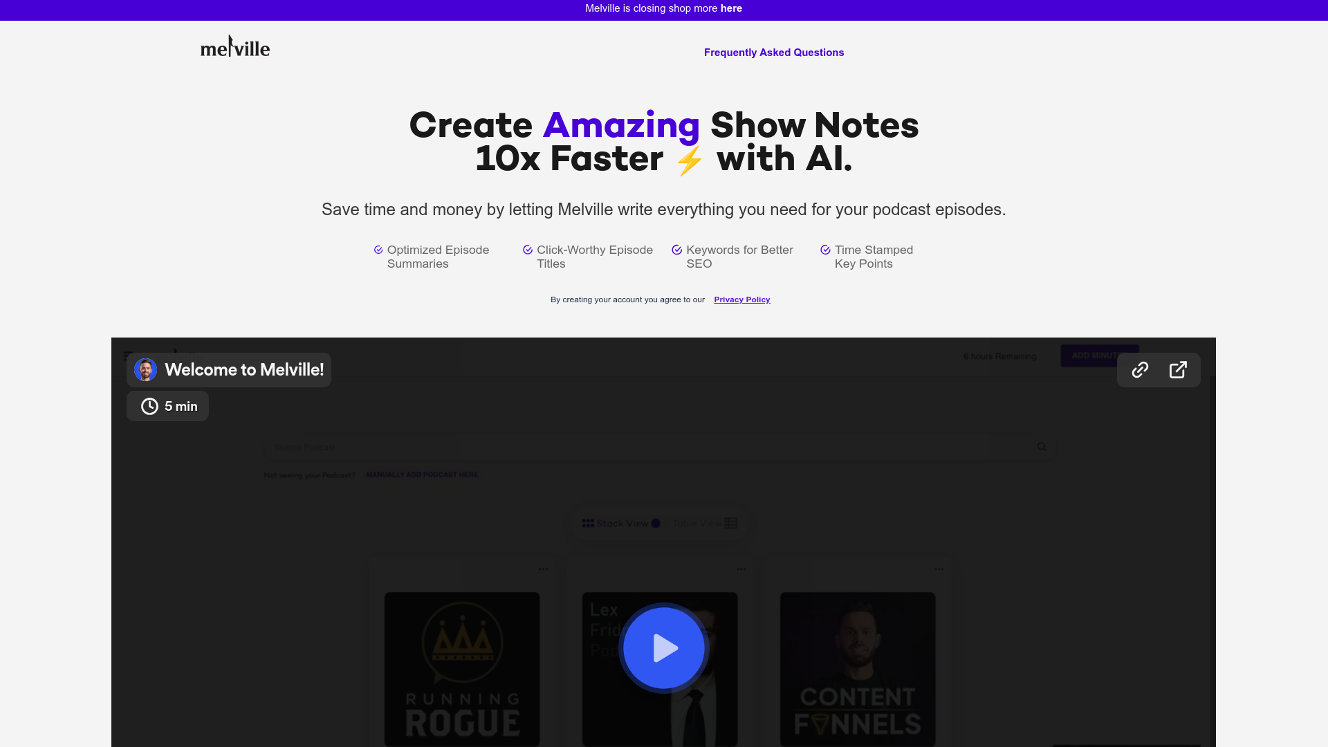 Melville Technologies Inc., renowned for revolutionizing podcast show notes and transcription services, is ceasing operations on February 1, 2023. The closure stems from the availability of similar fu