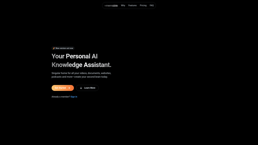 Memable is an innovative AI knowledge assistant designed to centralize all your digital content including videos, documents, websites, and podcasts. It addresses the challenge of information overload,