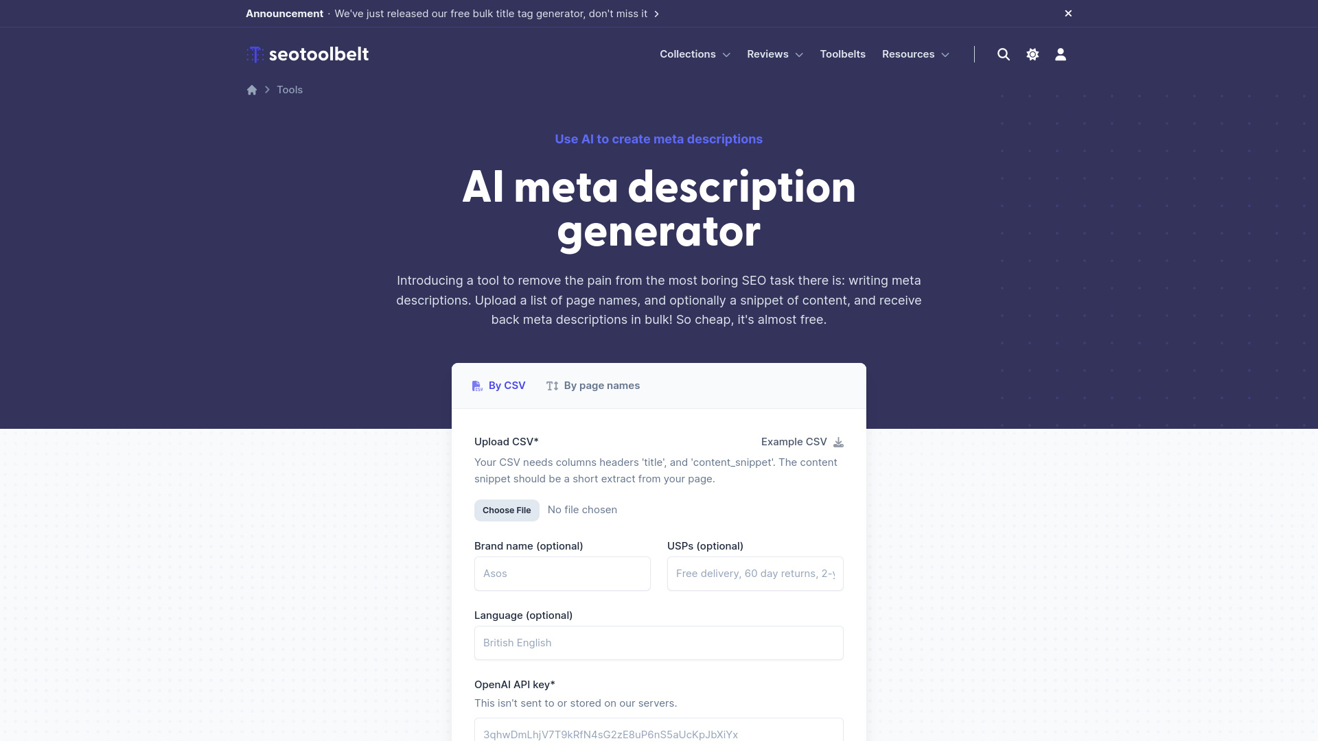 The Meta Description Generator by SEO Toolbelt is a highly efficient tool tailored for creating compelling meta descriptions that can boost your website's search engine ranking. Designed for SEO exper
