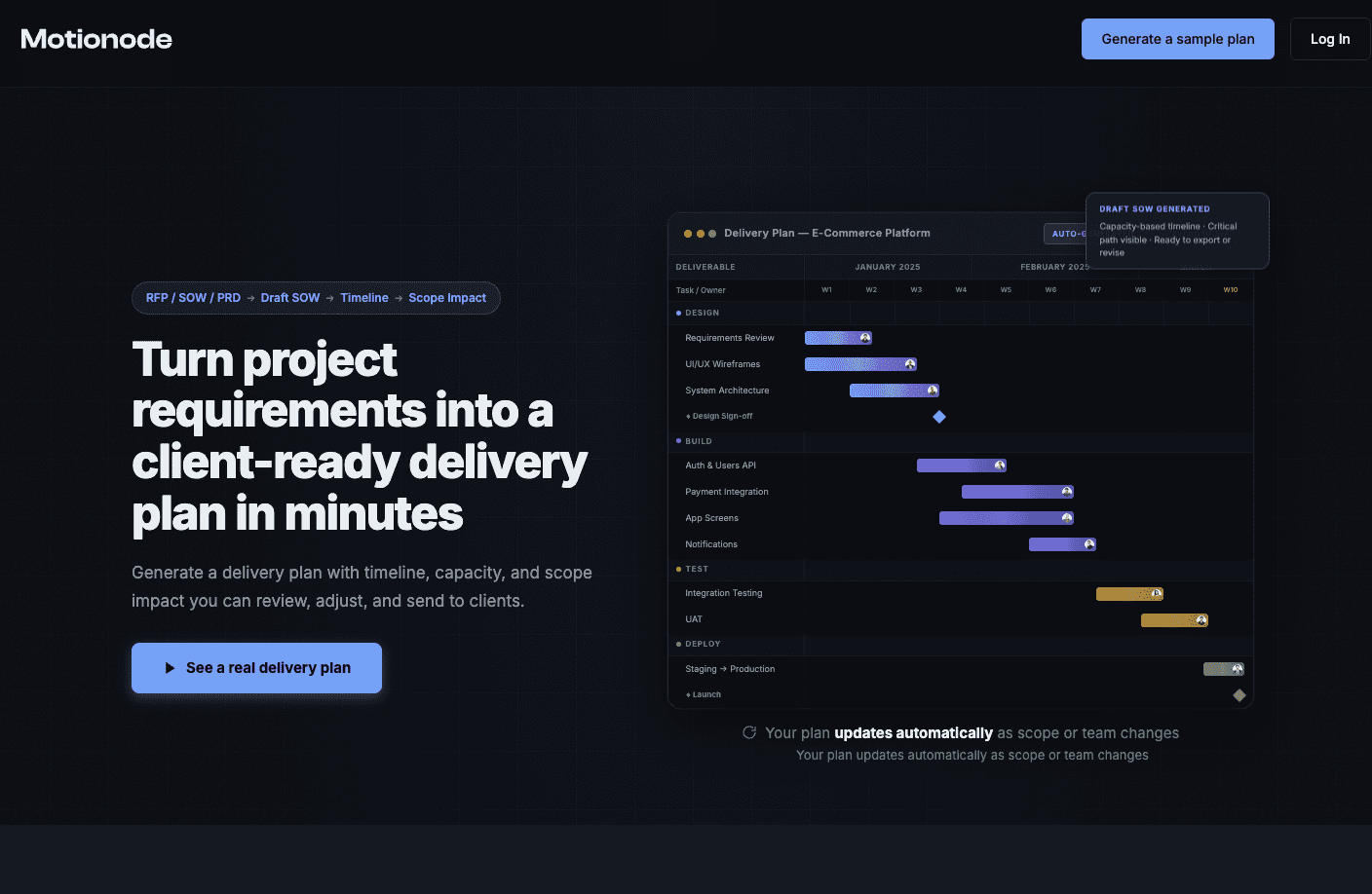 Turn project requirements into a client-ready delivery plan with timeline, capacity, and scope impact.