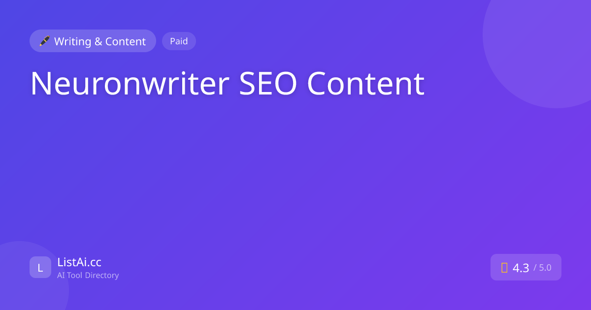 NLP-driven content optimization editor that helps writers create semantically rich, high-ranking articles. Pricing: Paid (Bronze from $23/month; Silver from $45/month; Gold from $69/month). See pros,