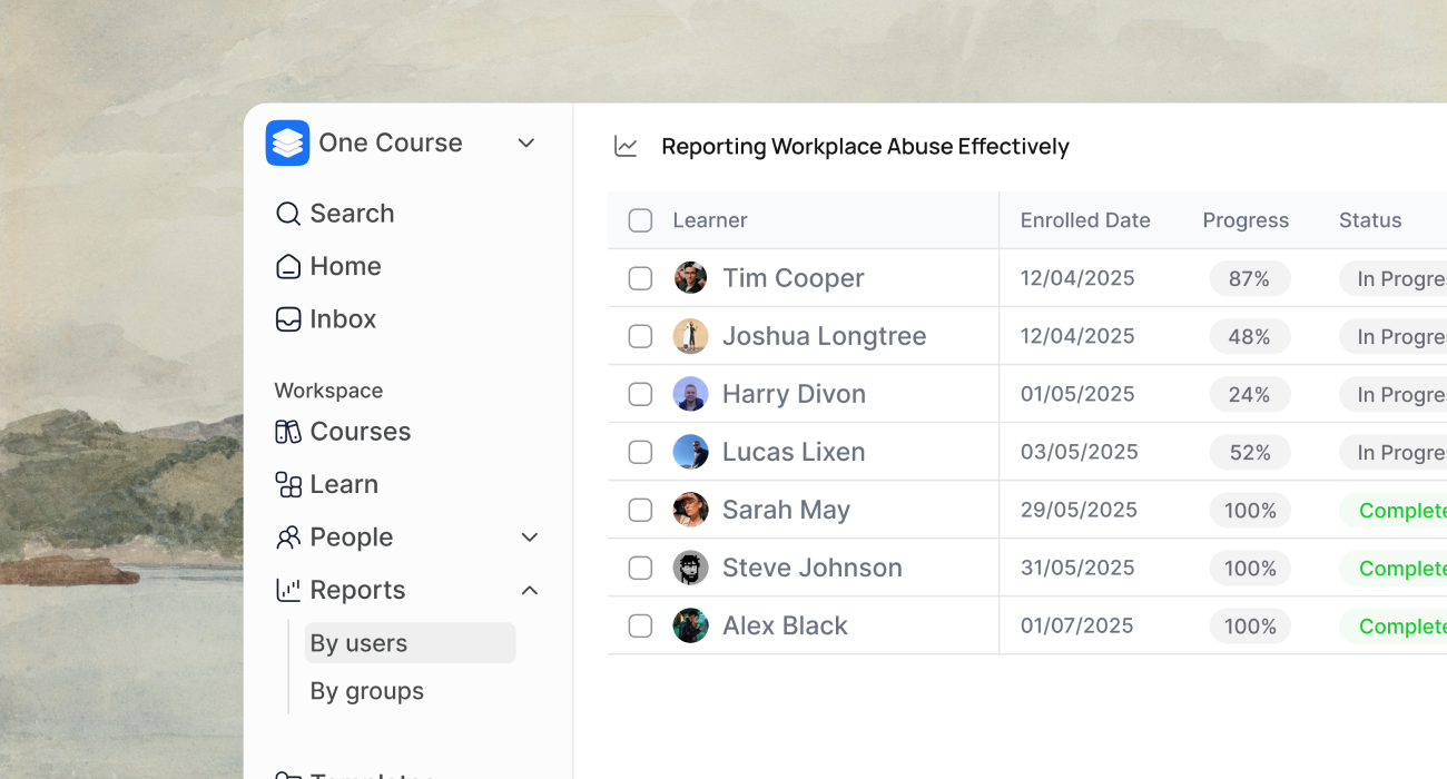 Enrol students, track progress, and manage course access from a central dashboard