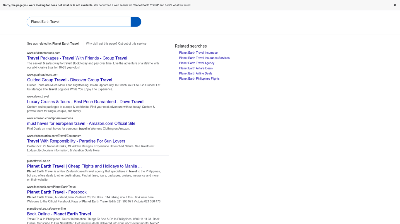 Planet Earth Travel is an award-winning travel agency located in Auckland, New Zealand. Established in 1995 by Bob and Edith Carpenter, it is known for offering affordable flights and holiday packages