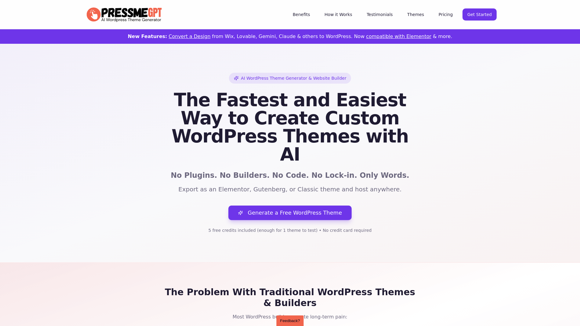 - Generates actual WordPress themes rather than just hosting a site elsewhere