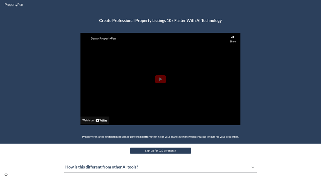 PropertyPen is an advanced AI-powered platform designed to help create professional property listings up to 10 times faster. This tool is customizable, fast, and adept at producing high-quality conten