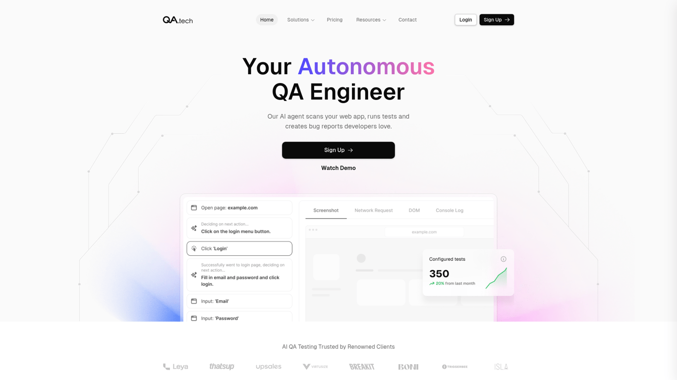QA Tech offers an advanced, autonomous QA testing solution for web applications. Their AI-driven agent operates continuously within the development pipeline to provide real-time testing, feedback, and