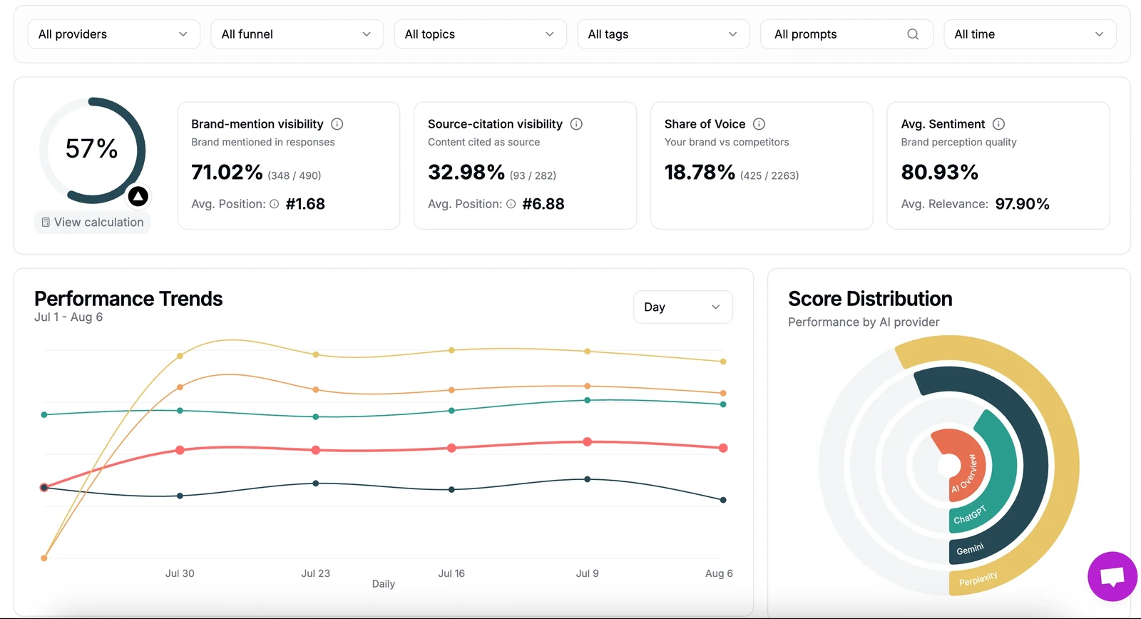 - Fills a gap in brand monitoring by tracking AI search engines rather than just traditional Google results