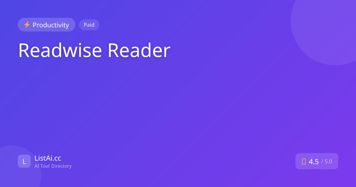 Readwise ReaderAI-powered read-it-later app with chat and highlights Pricing: Paid. See pros, cons, alternatives, and comparisons.Open SourceWritingDeveloper ToolsVisit Readwise Reader