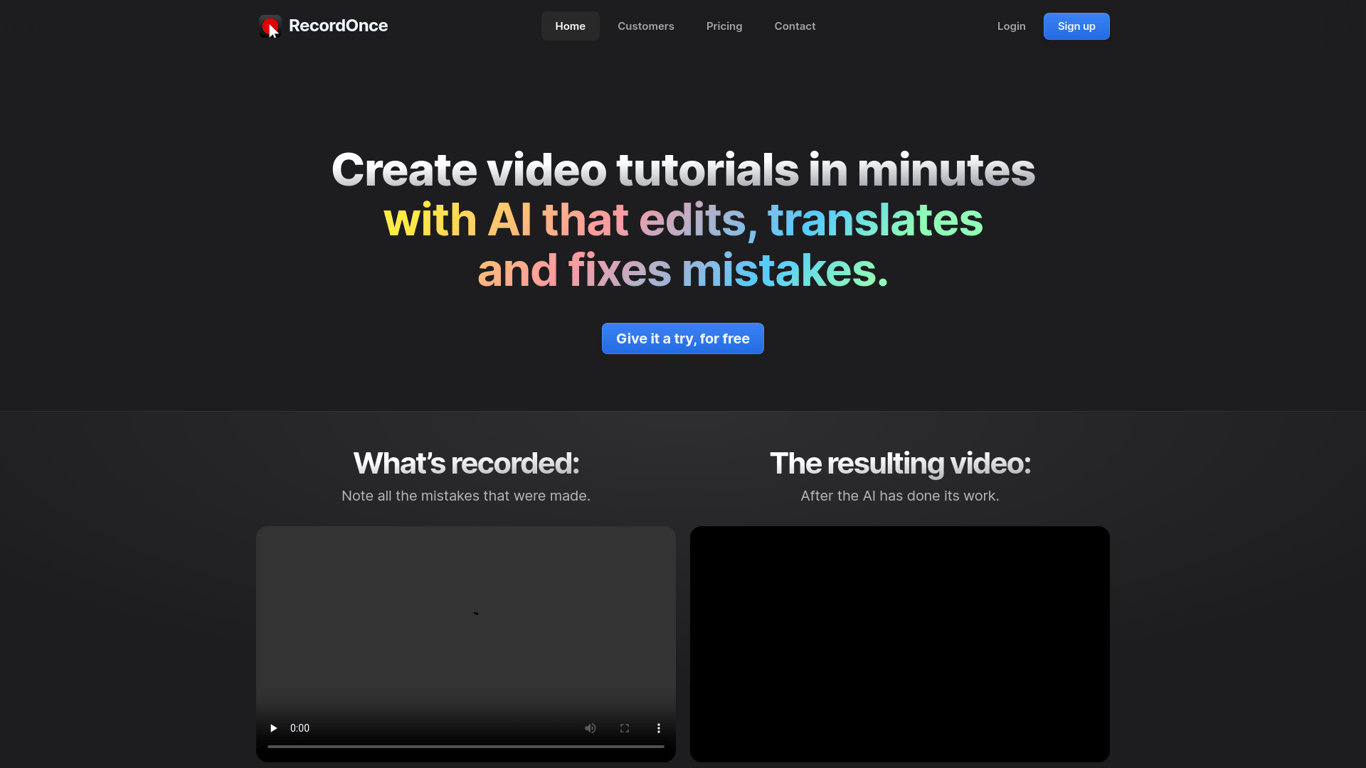Record Once is an innovative system that utilizes AI to create video tutorials in minutes, rather than hours. It records code instead of pixels, enabling unparalleled editing capabilities and efficien