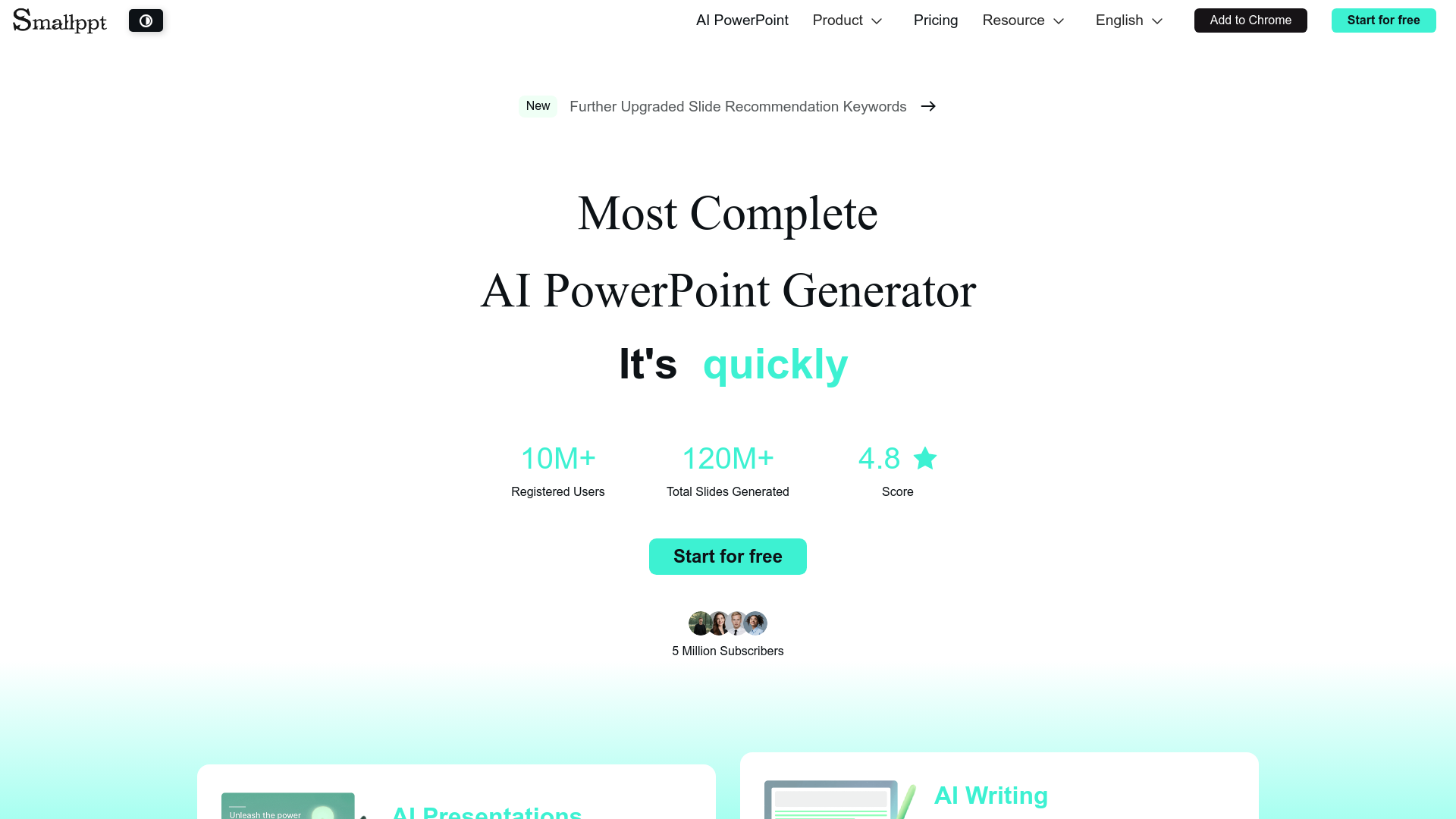 Smallppt is an innovative AI-powered tool designed to streamline the creation of presentations and mind maps. It automates the generation of slides or mind map branches by analyzing texts, files, link
