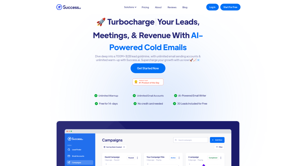 Success.ai is a comprehensive platform designed to supercharge your email outreach, offering a suite of features like unlimited email accounts, an AI-powered email writer, and an extensive database of