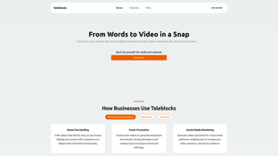 Taleblocks is a video creation platform designed for transforming written content into short and shareable branded videos. It allows users to create videos directly in a browser using features such as