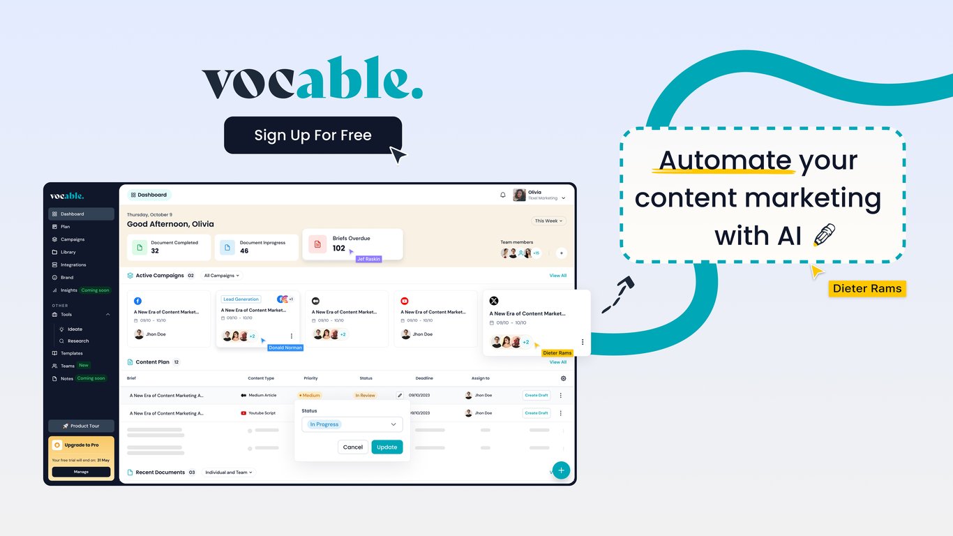 Vocable is an AI-driven content marketing platform aimed at streamlining every aspect of content operations. The platform simplifies the process of ideation, planning, drafting, collaboration, and opt