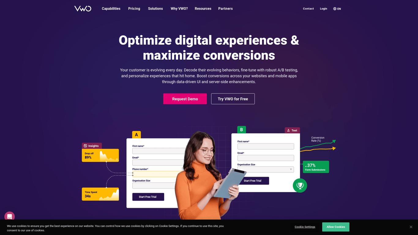 VWO (Visual Website Optimizer) is a comprehensive digital experience optimization platform that empowers businesses to enhance websites, mobile apps, and product features through systematic testing an